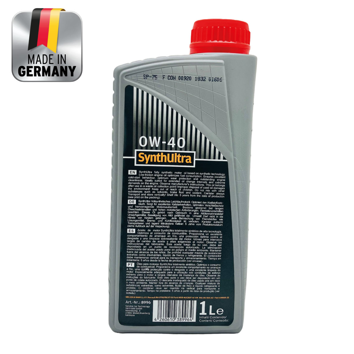 SynthUltra0W-40 es un aceite de motor de alto rendimiento y baja fricción basado en tecnología sintética que cumple con los requisitos más estrictos de los modernos motores de gasolina y diésel, turboalimentados y no turboalimentados, de turismos.